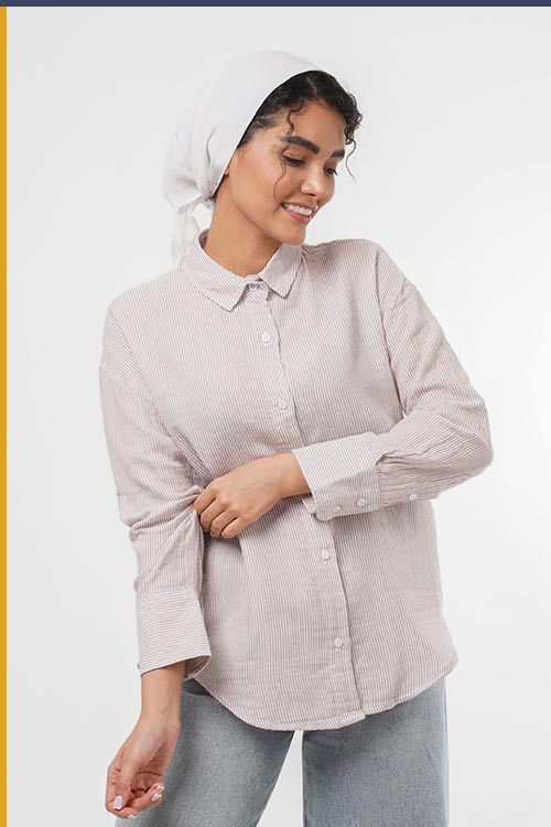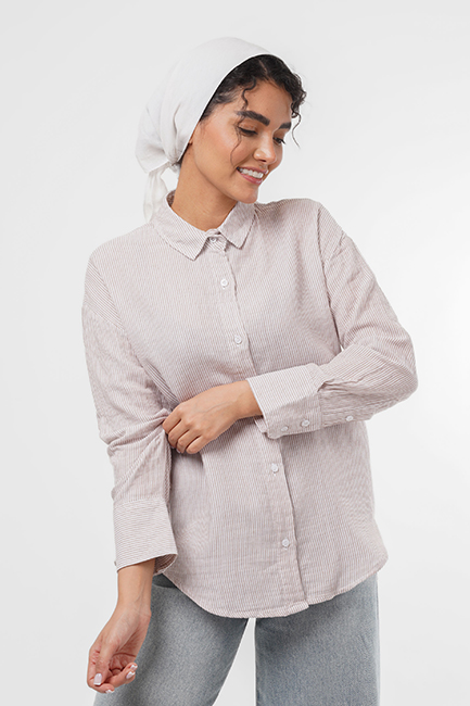 شومیز لینن راه راه سفید آجری TS001
